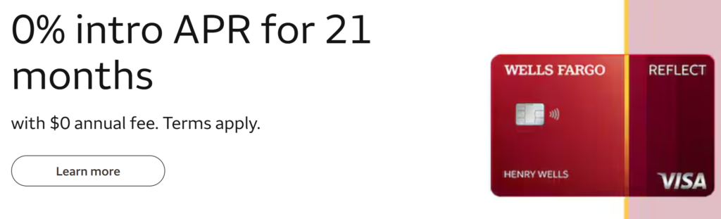 - Reflect – offers 0% for 21 months on purchases and balance transfers