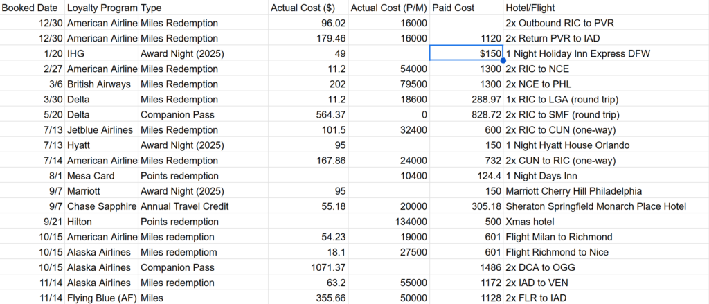 It goes without saying, but I love my rewards. What I love ALMOST as much as enjoying the freebies and perks and benefits is looking back and seeing all that I was able to do on the big bank and airline dime. Another blockbuster year, 2025, at $13,378. Topping last year’s haul by a few hundred (inflation-adjusted, we’re flat with last year’s $13,112.)