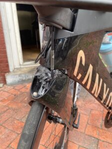 - Bicycle (broken wheel, fork, damaged frame, and general roadrash)