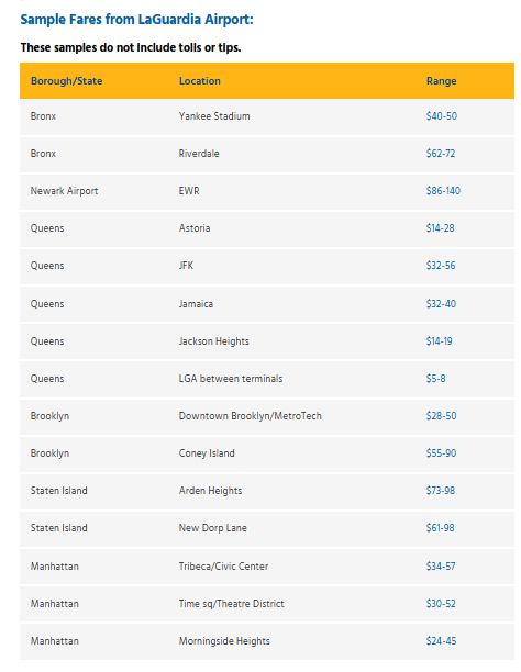 Precisely to avoid hassle, strange parking lots, and sketchy drivers, we went to the taxi line at the LGA airport. Easy, painless, no wait. Jump in a taxi and go. As soon as we jump in, we enter the information for address, and the driver quickly says “press yes” and taps on the screen. That “yes” was an opt-in to Flat rate fare (exl. tax, fees, tip, etc.) of $65 to Manhattan. The thing is, that’s not how it’s supposed to be. Even the LGA airport website showcases sample fares, and unsurprisingly these to even far reaches of Manhattan are substantially lower. We’ve now had multiple taxi…issues over the years, so I’m more deliberate than most.