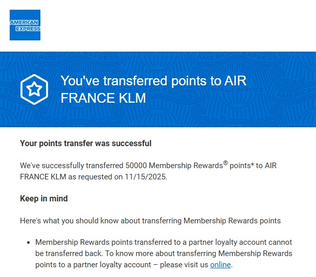 Booking set two: KLM via Flying Blue via American Express points transfer (AMEX Platinum Card)