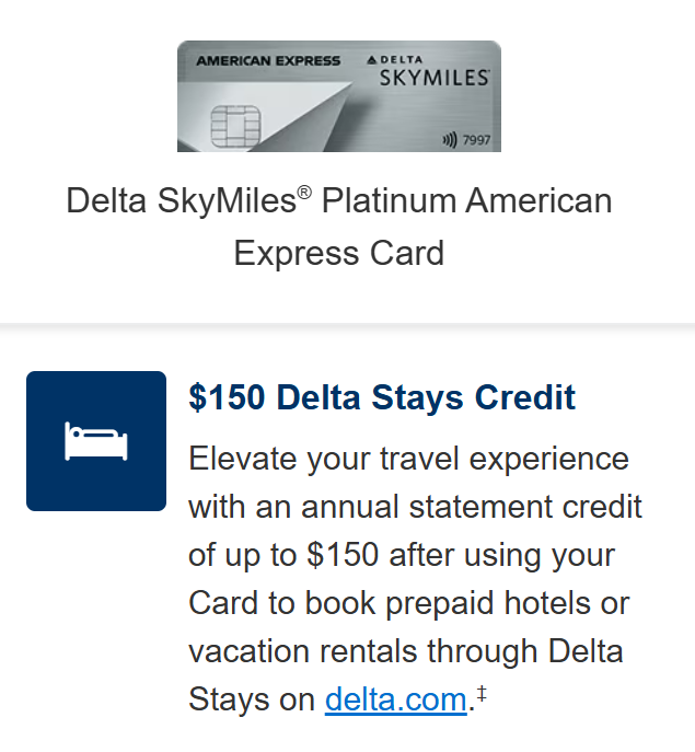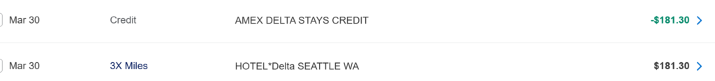 • If you’re traveling, use this credit to get a serious (up to 100%!) discount on your hotel. Also bank a few Delta points for the booking, while you’re at it. If you’re staying for multiple days, book as close to your credit amount ($100-$250 depending on the card) on Delta Stays, and book the rest on any other typical travel card you have using the best available rate (Delta Stays is probably not the lowest). Contact the hotel to have them link the reservations. Boom.