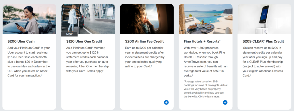 - Various others which may be worthwhile to some ($100 Saks credit, $209 Clear Plus credit, $155 Walmart+ Credit, etc.) Full details available on the AMEX product page linked above.