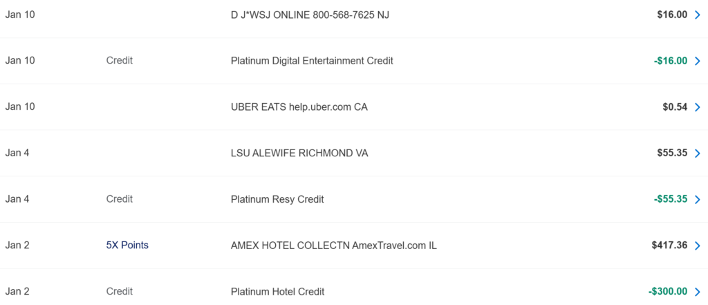 - Resy Credit – This is worth $400 a year to me. I will otherwise spend at least $100 a quarter at a Resy restaurant.