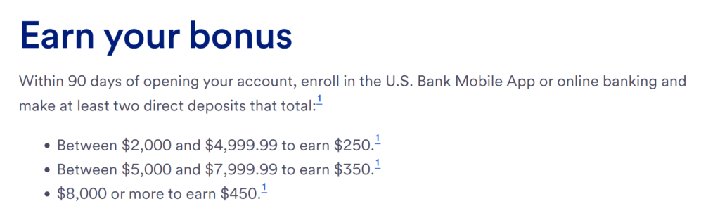 US Bank occasionally has some good offers on their products. This is one of those. While the quantity of direct deposits can be substantial, when looking at the 3-month window, assuming 2x-monthly paychecks, that $8,000 for the top bonus tier breaks out to ~$1,300 a paycheck (if setting up right away). That feels pretty achievable for most. Even if not, the lower tiers are pretty compelling independently. Worth the hassle.