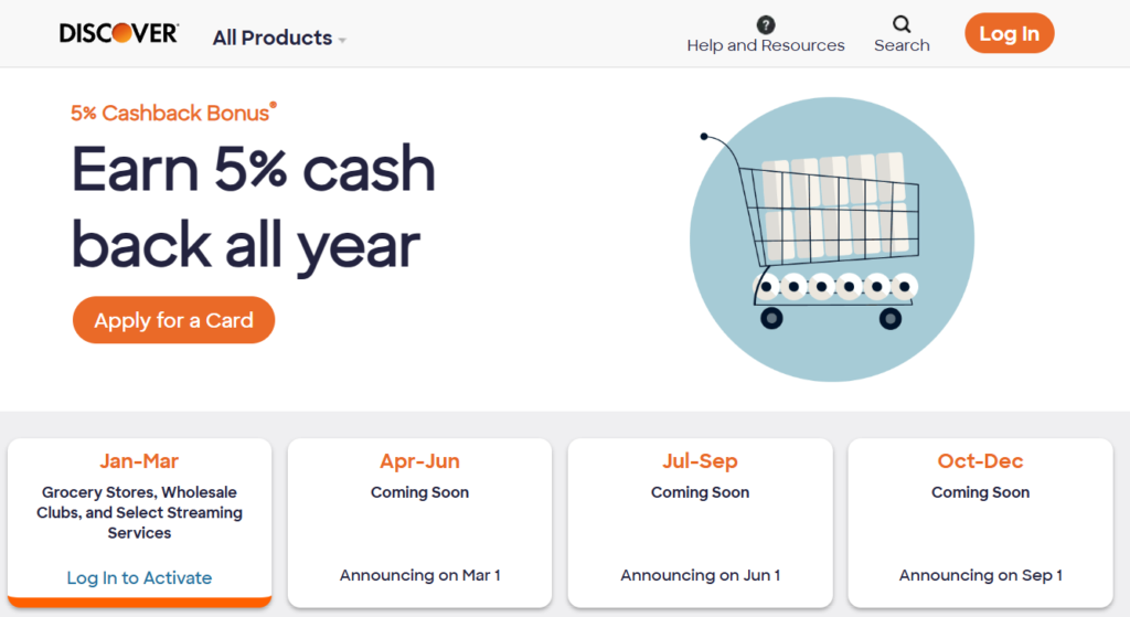 2. Discover It – 5% Grocery Stores, Wholesale Clubs, and Select Streaming Services